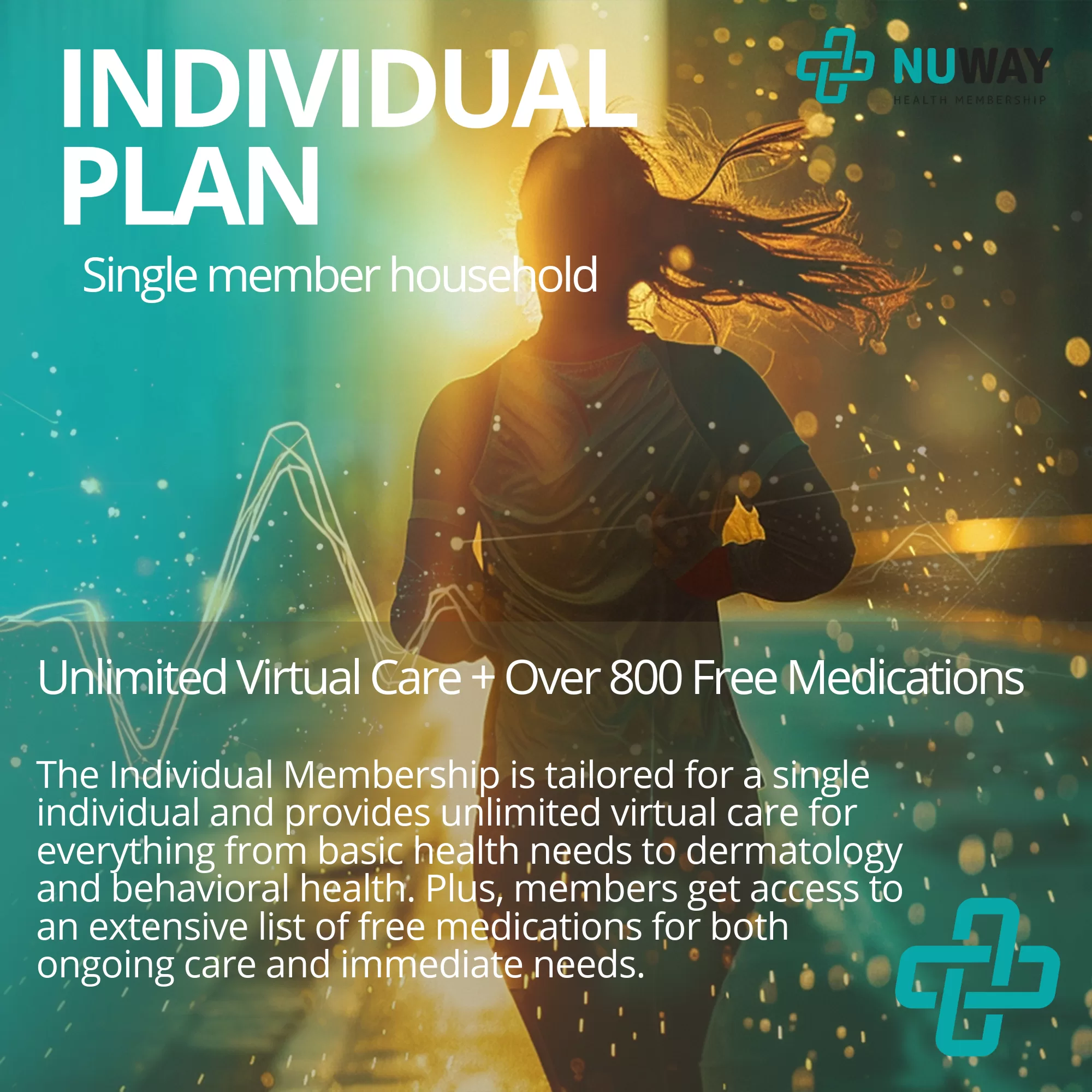 The Individual Membership is tailored for a single individual and provides unlimited virtual care for everything from basic health needs to dermatology and behavioral health. Plus, members get access to an extensive list of free medications for both ongoing care and immediate needs.